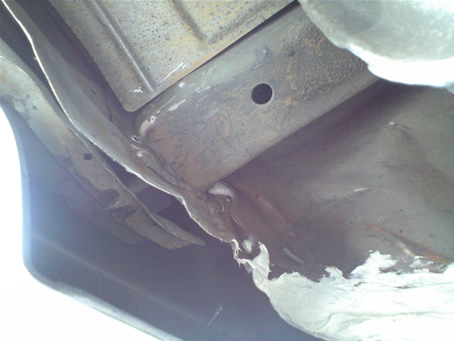 さらにリアインサイドパネルはひずんでいて、ごまかすためのシーラーがこれでもか!という感じで塗られています。