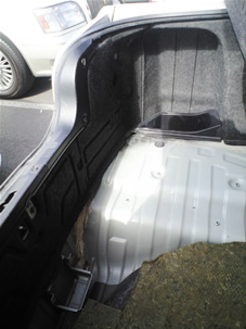シーラーに乱れがあるのが確認できますね。ついでにトランクフロアにしわもあります。